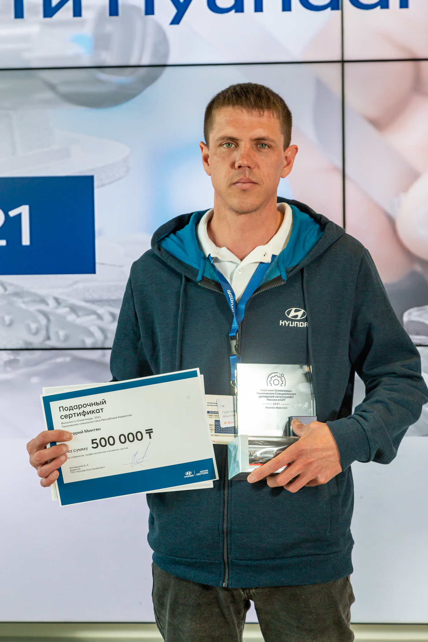 Yegor Zavyalov and Grigory Mintyan received the right to participate in the Olympics in Russia after winning the Olympic of technical specialists of Hyundai dealership network in Kazakhstan, the results of which were summed up by Hyundai Auto Kazakhstan in April 2021. Participants were selected in two stages; they were evaluated by certified trainers of Hyundai Training Center (Almaty), Hyundai Training Academy, and Hyundai CIS headquarters (Moscow).