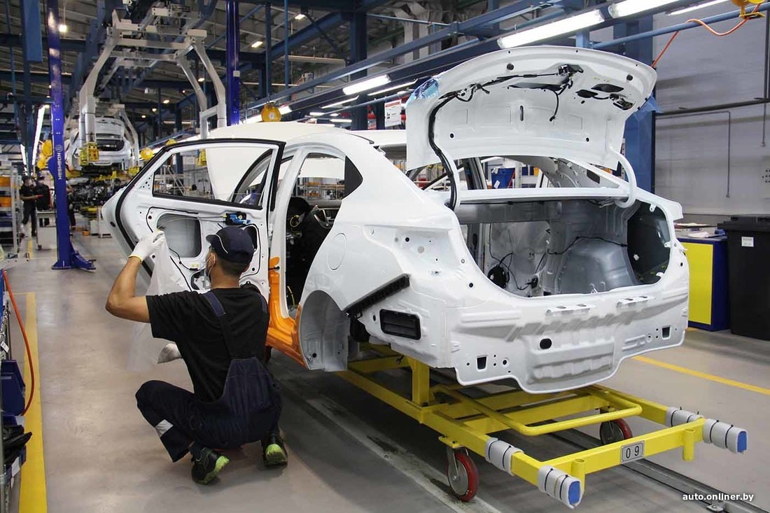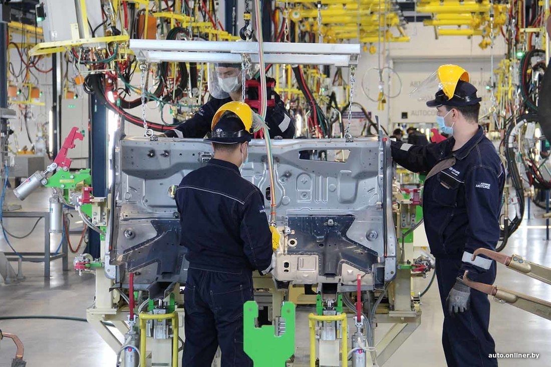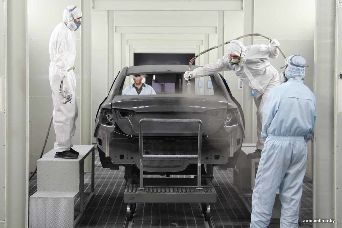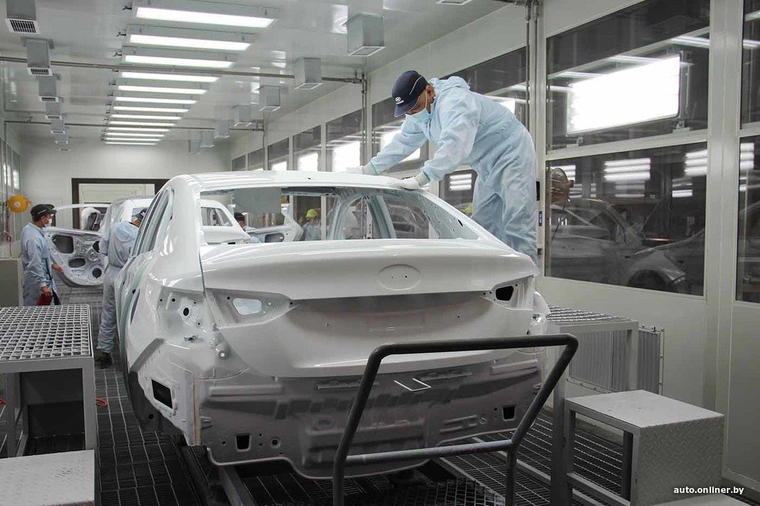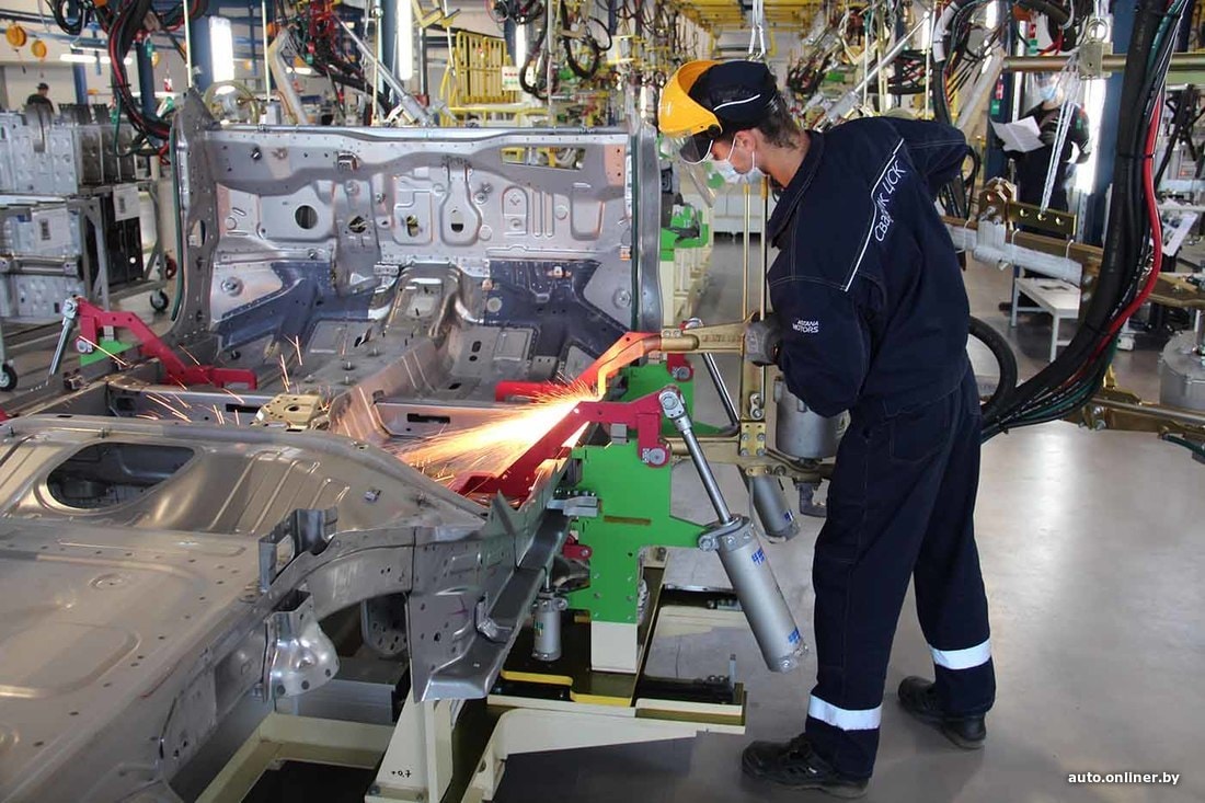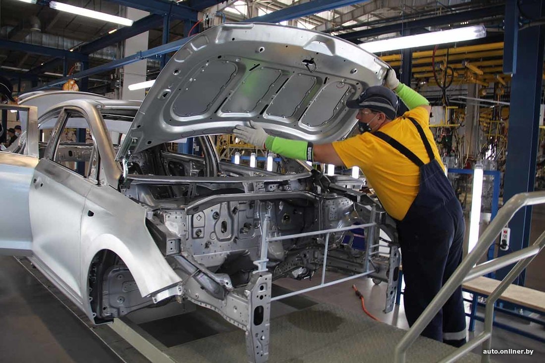 Manufacture of a car starts in the welding shop. Different stampings are supplied to an assembly site to become a full-fledged body. Sidewalls, a roof and other elements are welded to the bottom. The VIN code, doors, a trunk lid and a hood are attached to the car. All of the processes are done by people rather than robots as, for example, at the BelGee plant in Borisov.