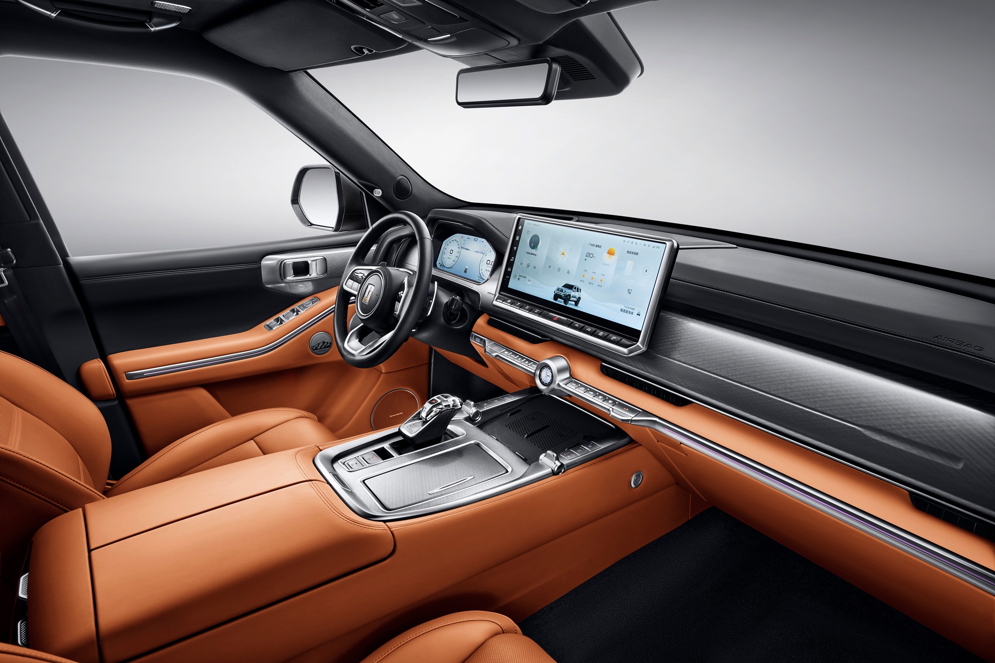 The interior of the flagship car uses only high-quality materials, including genuine Nappa leather. Ergonomic seats with massage, heating, and ventilation functions provide a high level of comfort in any weather. Engineers and designers paid special attention not only to the driver but also to the second-row passengers. For those who prefer a car with a personal driver, the TANK 700 offers space, comfort, and equipment comparable to the business class of the top airlines.