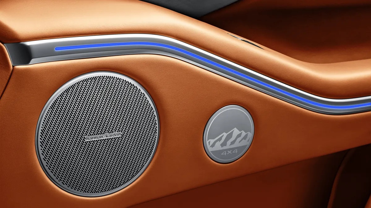 The car interior has enhanced sound insulation. The premium Harman/Kardon audio system with 16 speakers gives the interior a concert hall feel which will be appreciated by fans of high-quality sound. Active noise reduction and double glazing guarantee a quiet ride even on the busiest roads. In addition, retractable footrests, a sunroof, and electric curtains on the rear windows will make the TANK 700 especially comfortable to drive in.