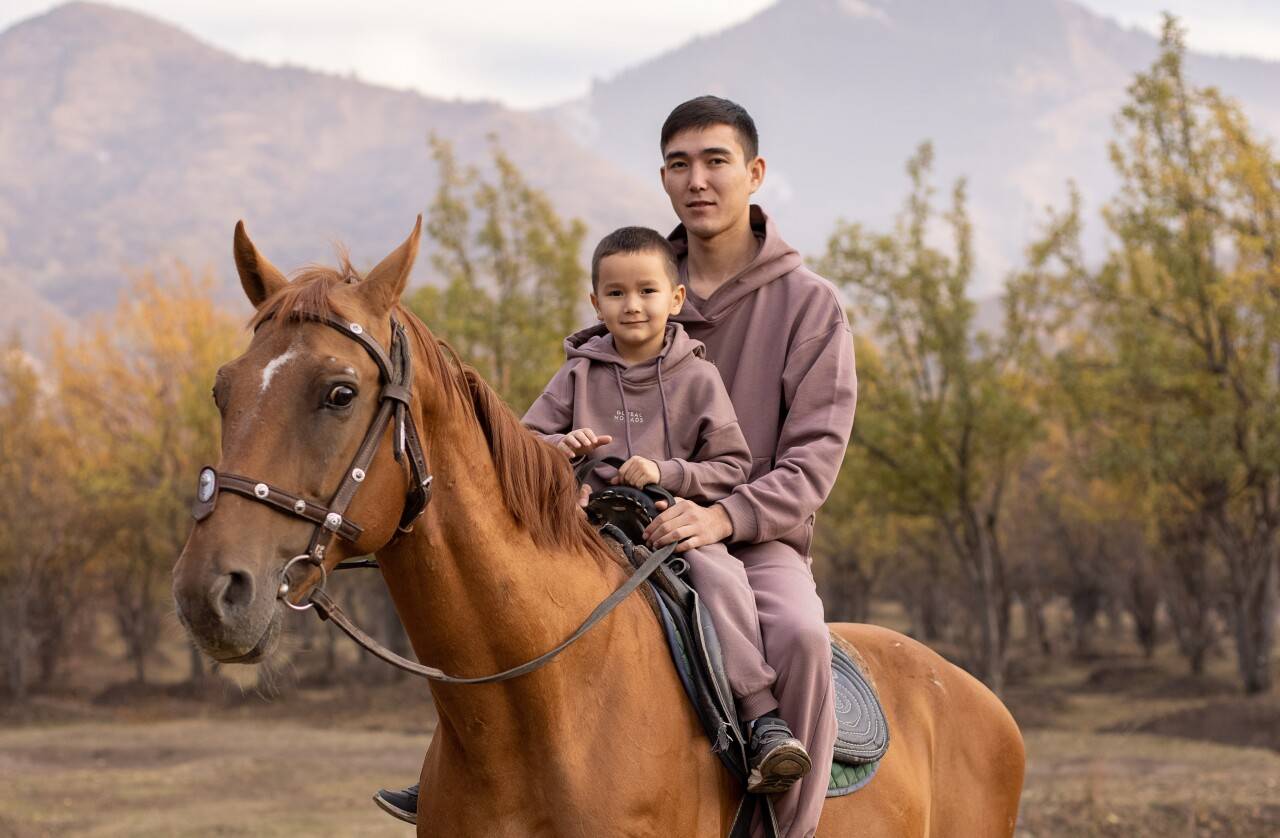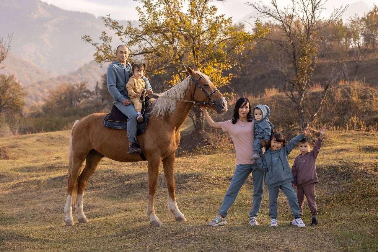Our family is aged seven. My wife’s name is Nazira, and we have four children: Sezim, 6, Dimash, 5, Fariza, 2, and Amir, 1. Originally from Taldykorgan, my family and I moved to Almaty in 1994.