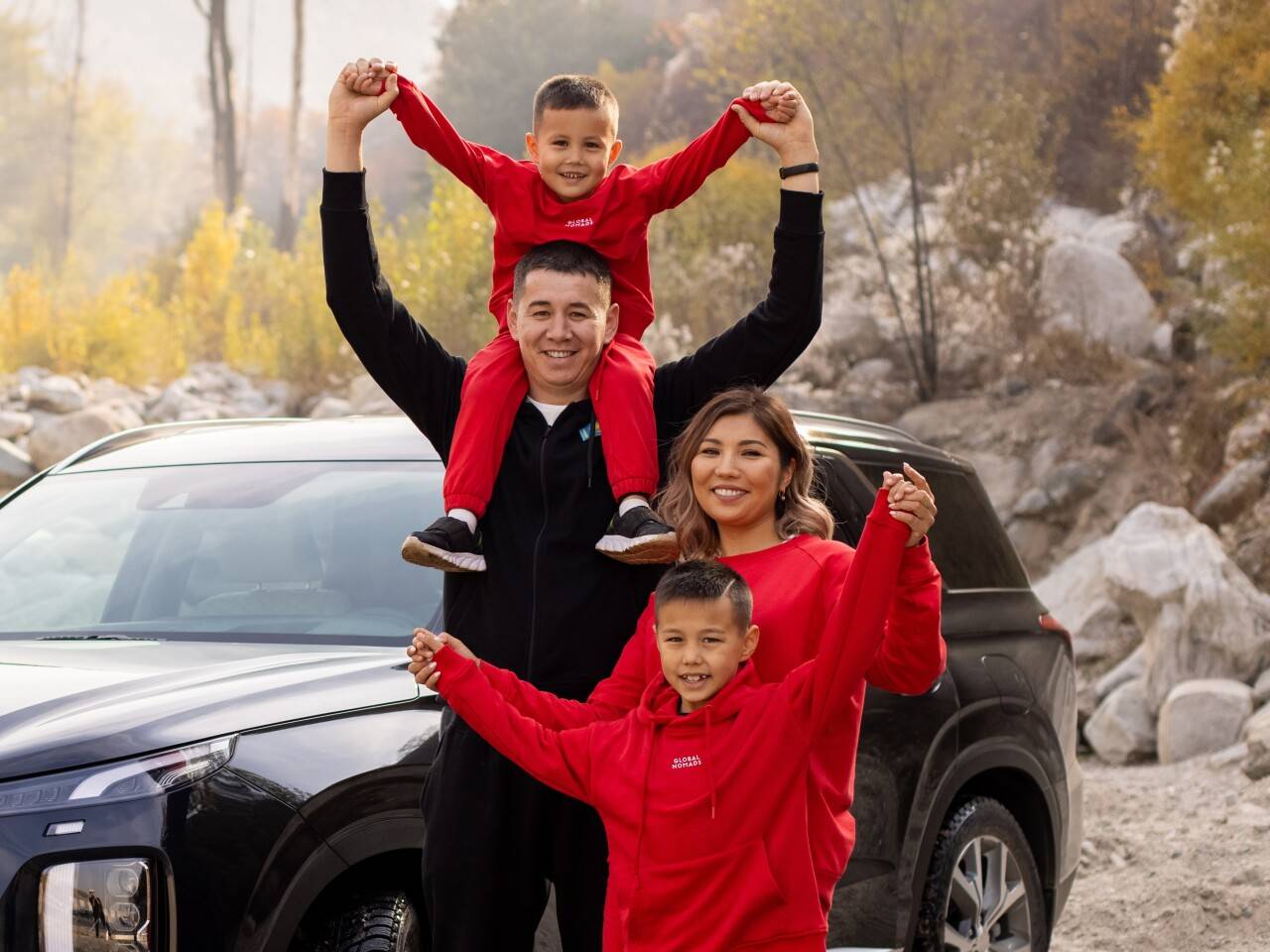 The lifestyle of the ancient nomadic people inspired the founders of the local brand of children’s apparel Mimioriki to create a family brand called Global Nomads to demonstrate to the world the cultural and historical heritage values of our ancestors. The employees of the Hyundai Trans Kazakhstan plant hit on the idea and took on the role of nomads by going on a trip in cars they produce at the enterprise in Almaty. The colleagues with their families enjoyed the last warm days of the golden fall of 2021 in the Zailiyskiy Alatau foothills.