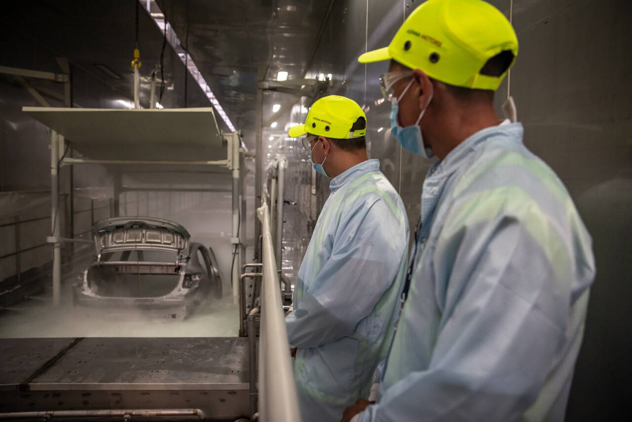 Preparation of the car body for painting at the cataphoresis line, where the future model comes from the welding shop, is one of the most impressive stages of the car-making process.