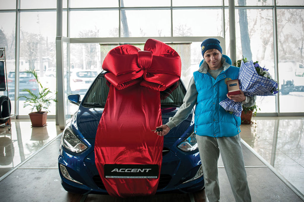 Осы жылдың қаңтарында «Астаны Моторстан» және Hyundai Auto Almaty дилерлік орталығынан сыйлықты 2012 жылдың Лондон Олимпиада ойындарының қола чемпионы және 2014 жылдың Афинадағы Олимпиада ойындарының күміс жүлдегері Гузель Манюрова алды. Жаңа Hyundai Accent тек жағымды емес, сондай –ақ өзекті сыйлық болды: 10 жылдан астам жүргізуші тәжірибесіне ие чемпионда өзінің автокөлігі болмады. «Мен қалалық биліктерге, Алматы қаласының спорт басқармасының басшысына және әрине «Астана Моторс» компаниясына осындай сыйлық үшін алғысымды білдіремін, бизнес тарапынан осындай қадамдар – спортты насихаттауға үлкен үлес», - деп бөлісті Гузель.