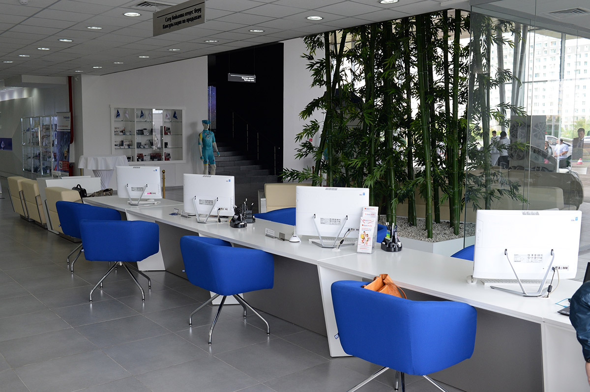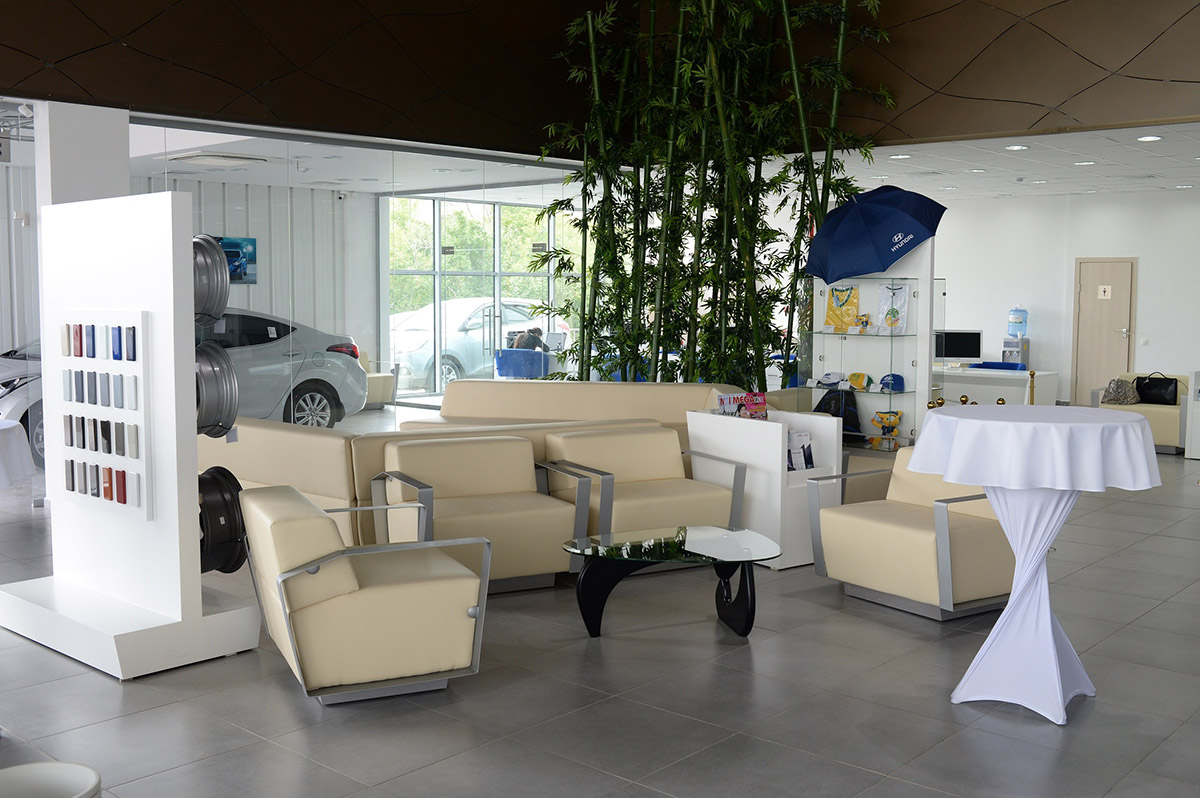 Автокөлікті рәсімдеудегі жаңа тәсіл тұтынушылардың жоғары класты қызмет көрсетуін де білдіреді. 1000 шаршы метрлік алаңы бар кең және таңдаулы шоурумда Қазақстанға жеткізілетін Hyundai автокөліктерінің барлық бірқатар үлгілері, сонымен қатар түпнұсқа қосалқы бөлшектердің, керек – жарақтардың және қаржылық өнімдердің кең таңдауы ұсынылады. Бұл жерде кеңес үшін кабинеті бар жеке премиум – аумақ, бірнеше күту аумақтары және балалардың ойнау алаңдары қарастырылған.