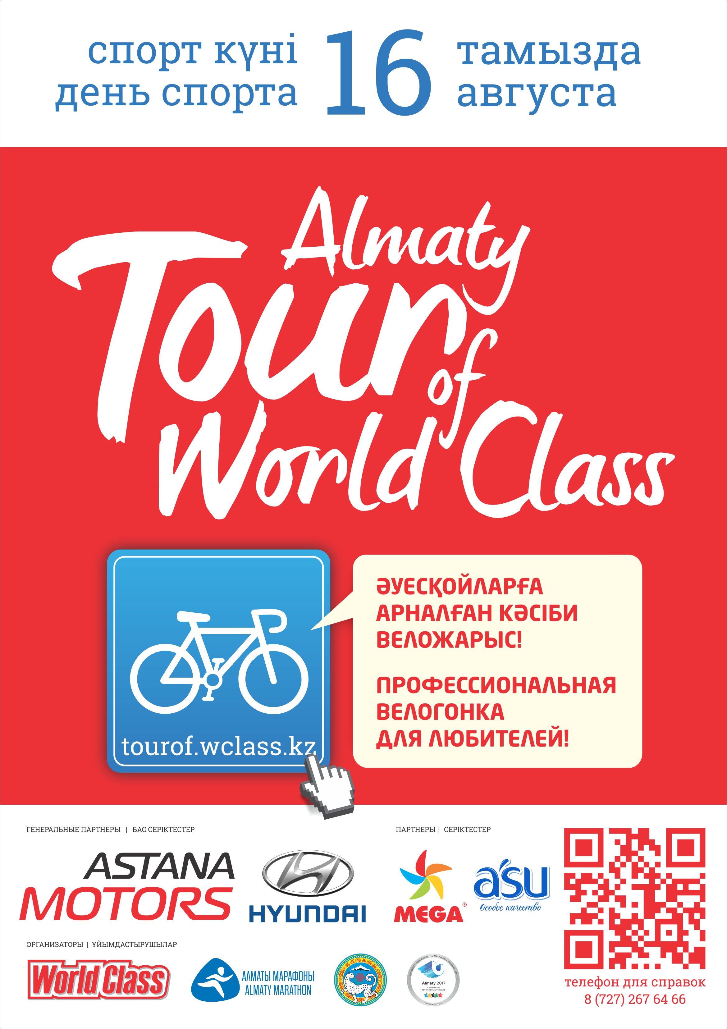 2015 жылдың 16 тамызында Алматы қаласында кәсіби деңгейдегі "Tour Of World Class" екінші әуесқой веложарысы өтеді. Жарыстың бас демеушісі Hyundai брендімен "Астана Моторс" ҚМК болмақ.