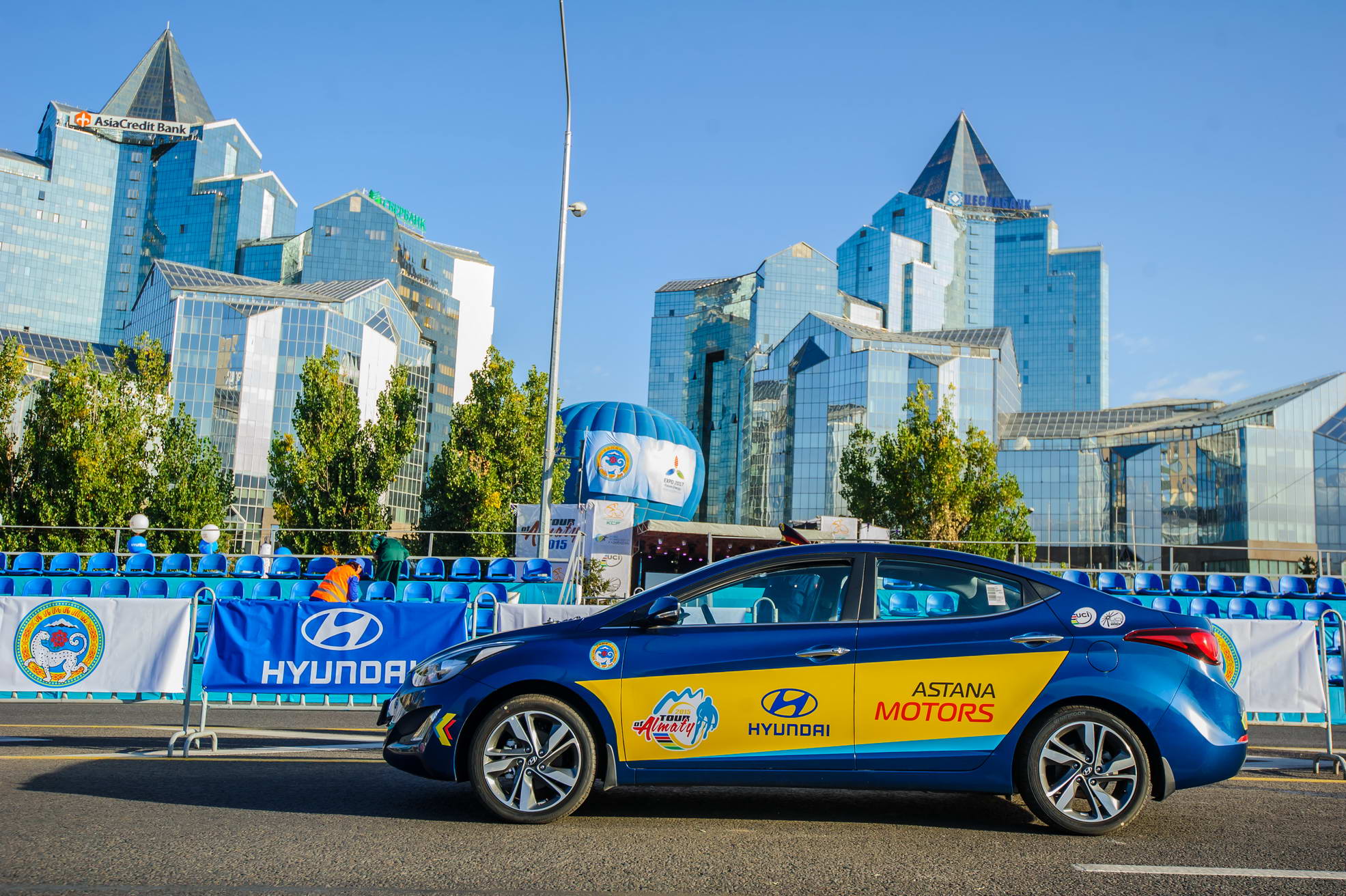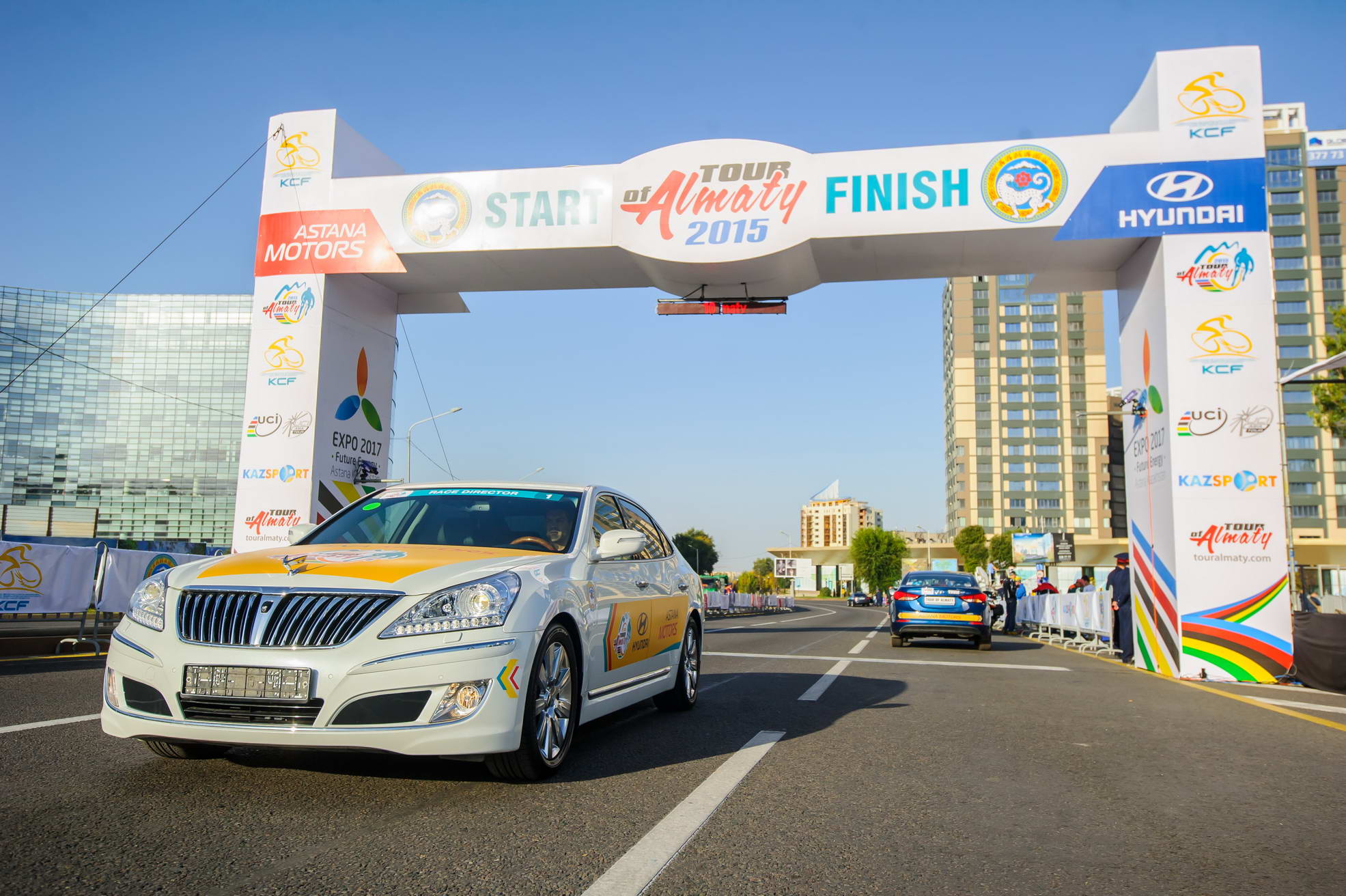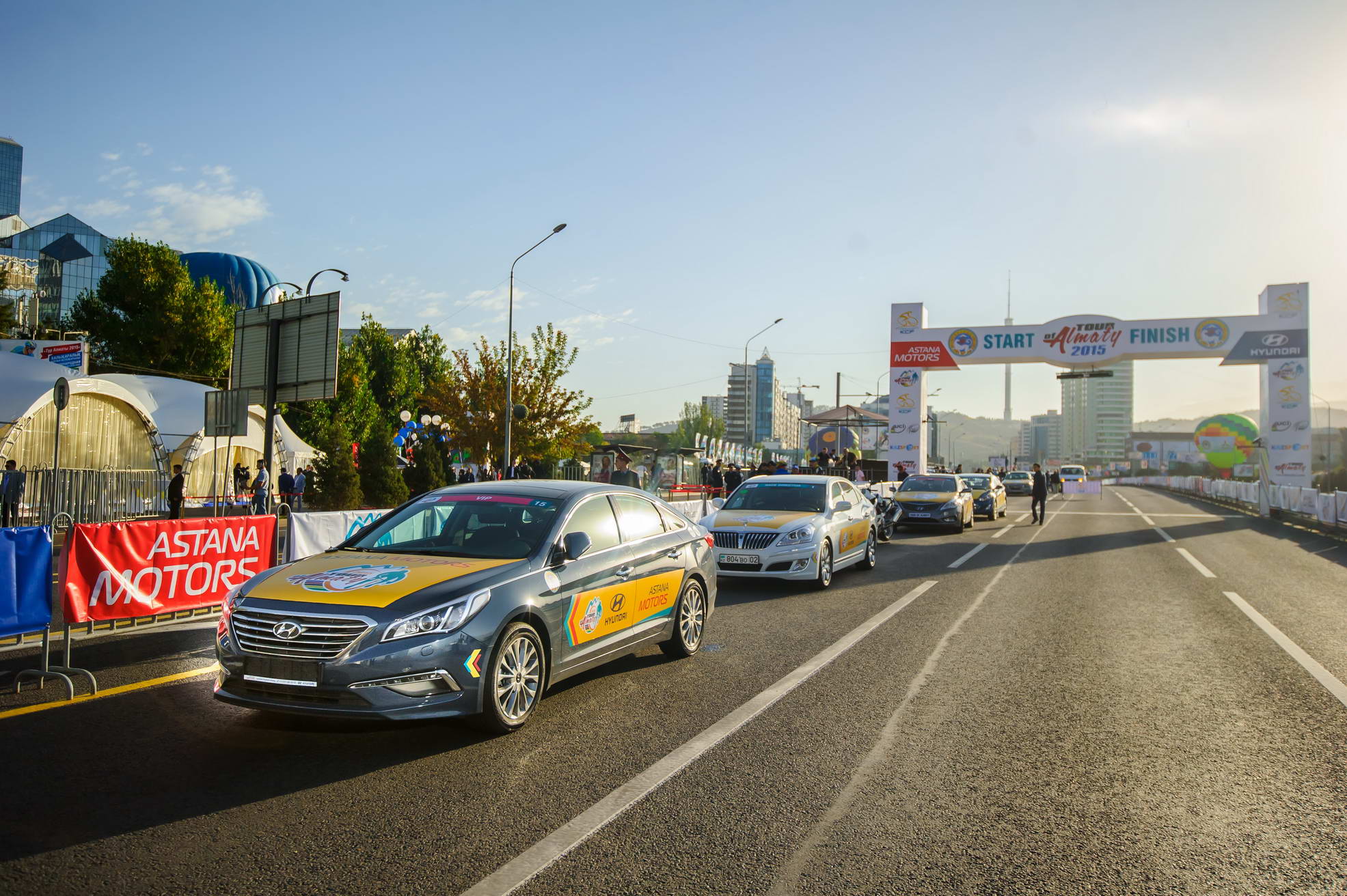 Компания "Астана Моторс" предоставила 34 автомобиля Hyundai для обслуживания всех велокоманд, организаторов и гостей престижной велогонки. Компактные седаны Accent использовались в качестве техничек команд, авто для прессы, технической помощи и допинг-контроля. Седаны "С" класса Elantra предназначались для комиссаров гонки. Седаны среднего класса Sonata, бизнес-класса Grandeur и Genesis и представительский седан Equus были закреплены за директором гонки и VIP гостями.