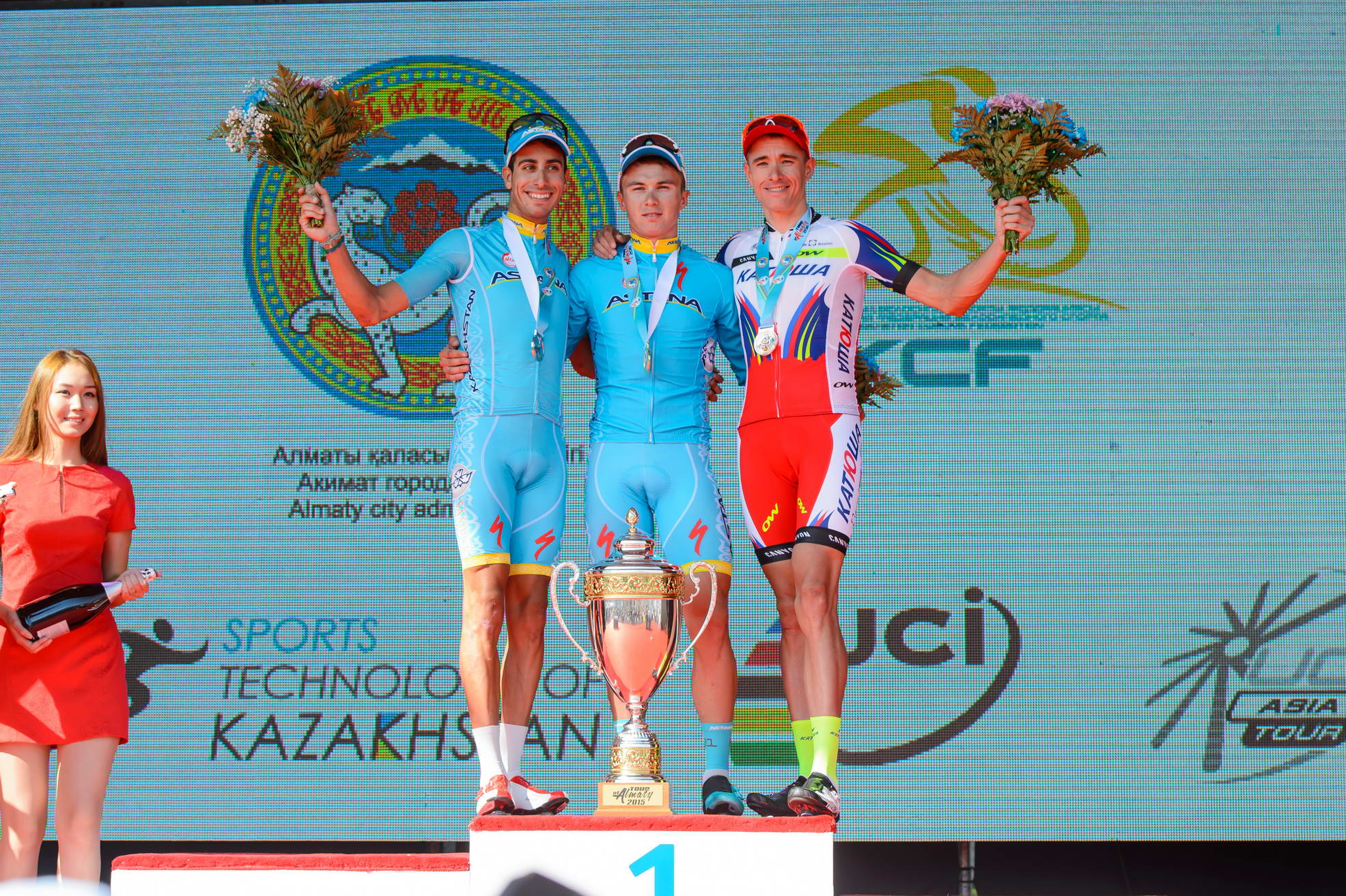 Победителем "Тура Алматы" общей протяженностью 186 километров второй год подряд стал наш соотечественник Алексей Луценко из команды "Astana Pro Team", финишировавший с большим отрывом. Второе место занял еще один представитель "Астаны" Фабио Ару. Третье место досталось Павлу Кочеткову из российской "Катюши".