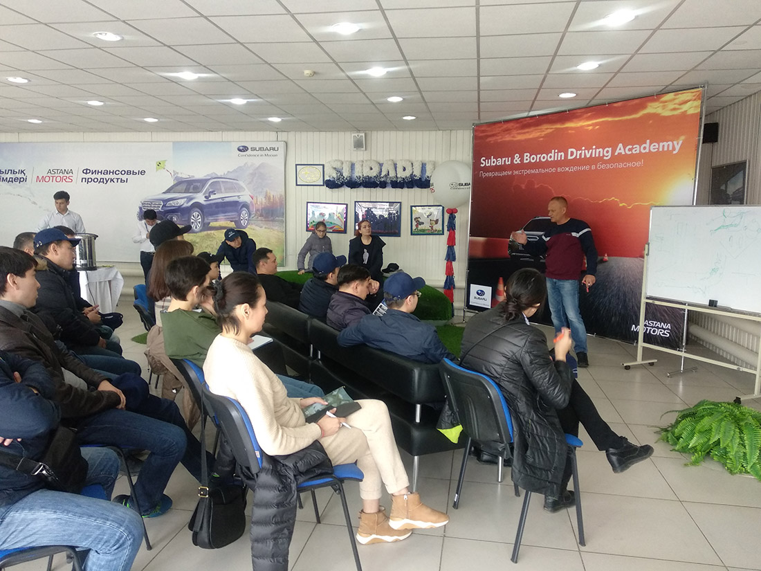 6 мая в дилерском центре Subaru Motor Astana стартовал новый сезон курса по вождению "Subaru and Borodin Driving Academy" - Превращаем экстремальное вождение в безопасное". Специальный курс для всех желающих на получение теоретических и практических знаний провел вице-президент Федерации автомотоспорта РК, основатель школы экстремального вождения, главный пилот команды Астана Моторс "Степные волки", многократный чемпион РК по автомобильному кроссу и ралли Владимир Бородин.