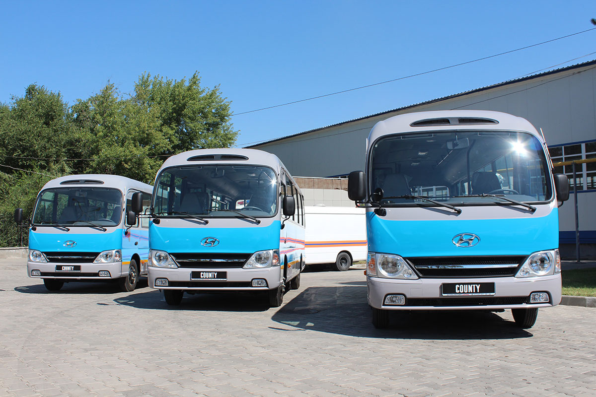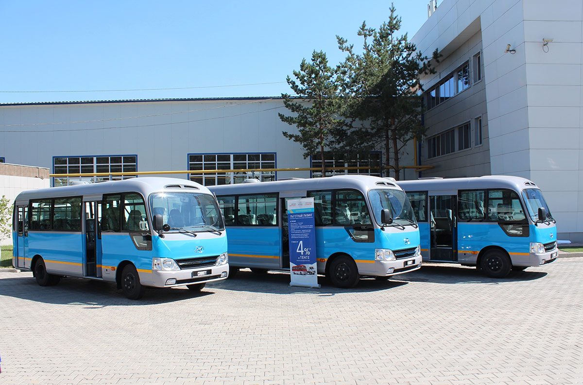 11 августа в Алматы состоялась передача заказчику первой в Казахстане партии автобусов Hyundai County производства алматинского автосборочного предприятия Hyundai Trans Auto в составе КМК "Астана Моторс" в рамках госпрограммы льготного лизинга коммерческой техники с номинальной ставкой 3% годовых.